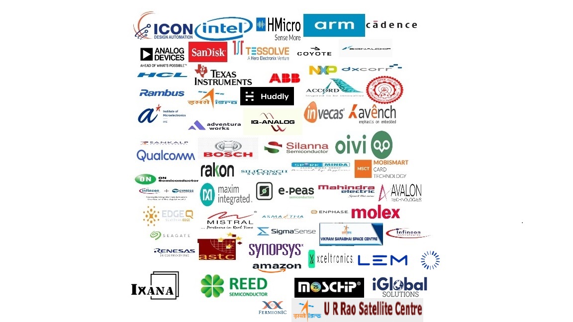 M/s. ICON DAPL, M/s. Intel, M/s. H-Micro-Life Signals, M/s. ARM, M/s. Cadence, M/s. Analog Devices Inc, M/s.Sandisk, M/s. Tessolve Semiconductor, M/s. Coyote, M/s. Signal Chip, M/s. HCL, M/s. Texas Instruments, M/s. ABB India Ltd, M/s. NXP Semiconductor, M/s. DXCorr, M/s. Rambus, M/s. ISAC-BNG, M/s. Huddly, M/s. Accord, M/s. IIT-Delhi, M/s. IME-Singapore, M/s. Adventura Technologies, M/s. IQ-Analog, M/s. Invecas, M/s. Avench Systems, M/s. Sankalp Semiconductor, M/s. Robert Bosch, M/s.Silaana, M/s. Oivi, M/s. Qualcomm, M/s. ON-Semi, M/s. Rakon, M/s. SiliconcH, M/s. MINDA-Pune, M/s. Mobismart, M/s. Infineon_Cypress, M/s. Maxim, M/s. E-Peas, M/s. Mahindra Electric, M/s. Avalon Technologies, M/s. EdgeQ, M/s. Mistral Solutions, M/s. Asmaitha Wireless Technology Pvt. Ltd, M/s. Enphase Solar Energy, M/s. Molex, M/s. Seagate, M/s. ASTC, M/s. Sigma Sense, M/s. VSSC-TVM, M/s. Synopsys, M/s. Renesas, M/s. Infineon, M/s. Xceltronics, M/s Ixana AI, M/s Reed Semi, M/s Moschip, M/s. iGlobal Embedded Solutions, M/s.LEM, M/s.Amazon , M/s. Feremionic Design & USRC-ISRO.